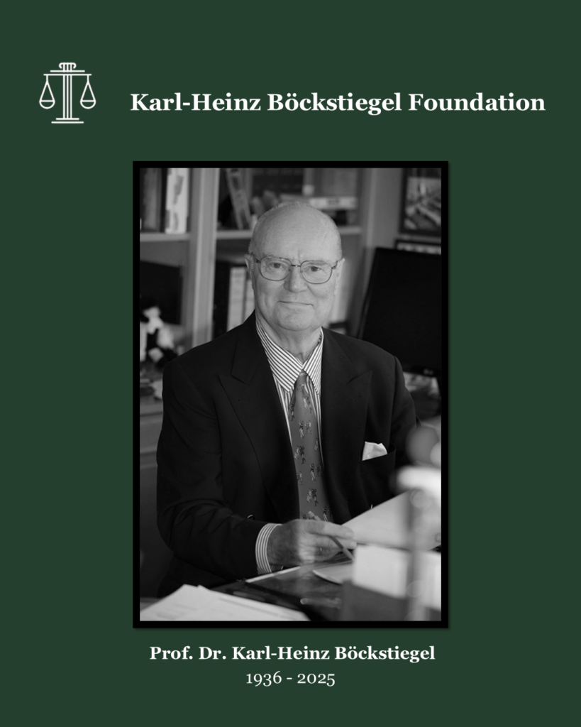 Vorstand und Kuratorium der Stiftung werden Karl-Heinz Böckstiegel als Menschen, Gesprächspartner und Mentor sehr vermissen und die Karl-Heinz Böckstiegel Foundation wird ihm ein ehrendes Andenke bewahren. Sein Werk in der internationalen Schiedsgerichtsbarkeit und seine Ziele werden in den Projekten der Stiftung weiterleben.